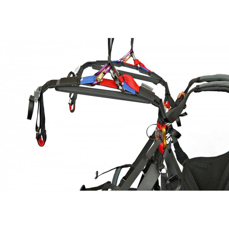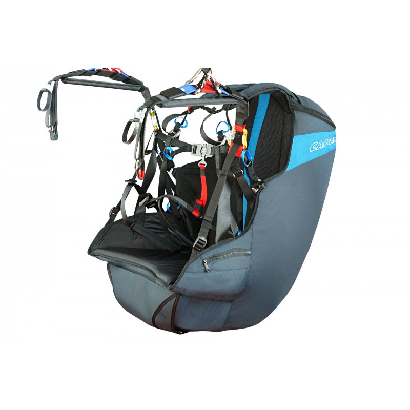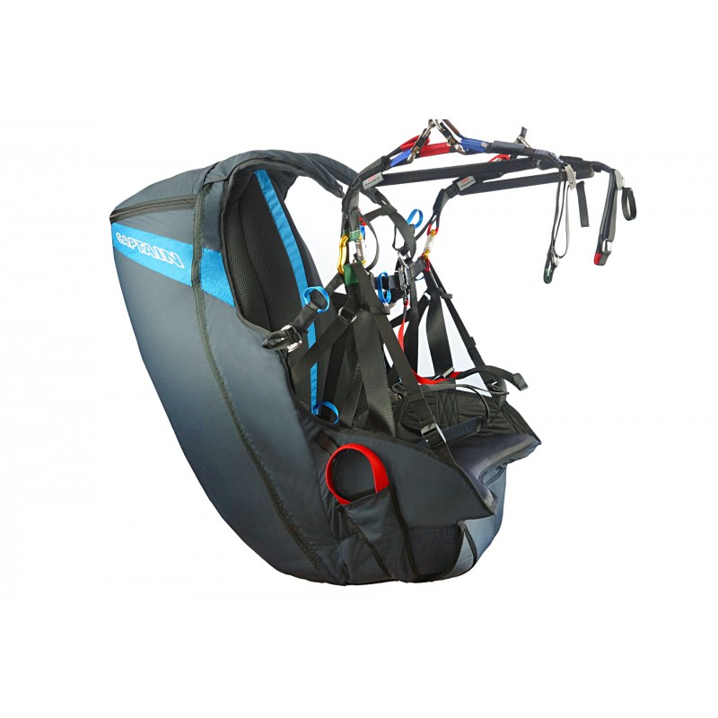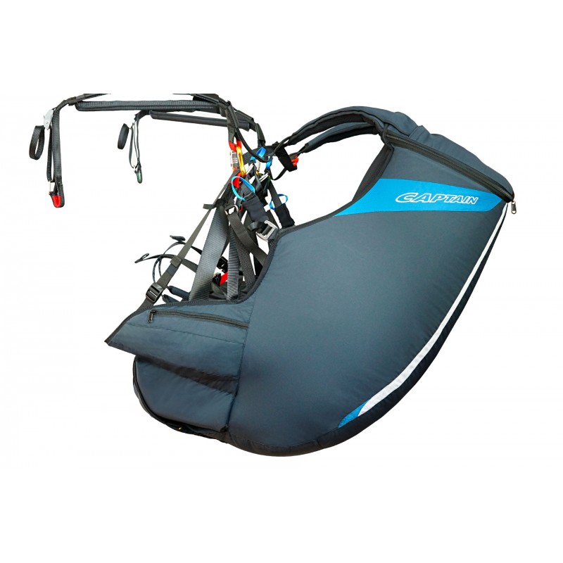 The Captain is a spacious, aerodynamically cut "ABS" harness for tandem pilot. The harness is well balanced thanks the height of the main carabineers and shape of the seat plate.