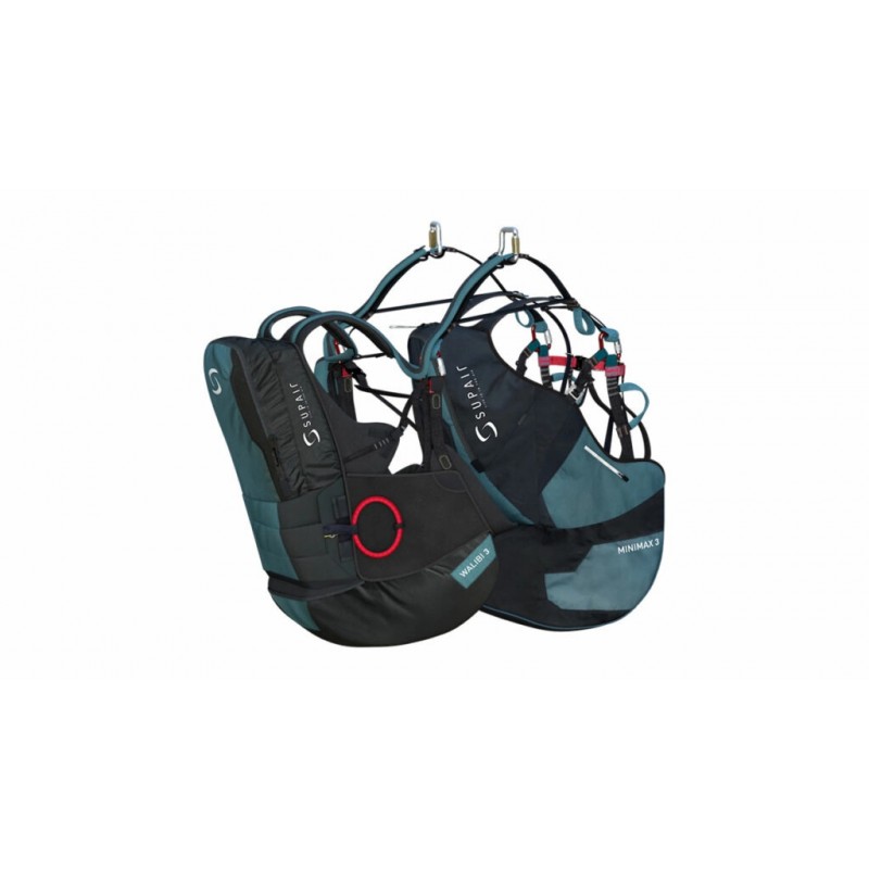 The Walibi 3 is a tandem harness for pilot with legstraps. The foam bag protection is designed to follow the pilot's stroke while providing full protection. The materials used and its design make it a high quality harness and a working tool for intensive use in tandem flight. The Walibi 3 and the Minimax 3 have been developed in parallel to form the Supair high quality tandem package.