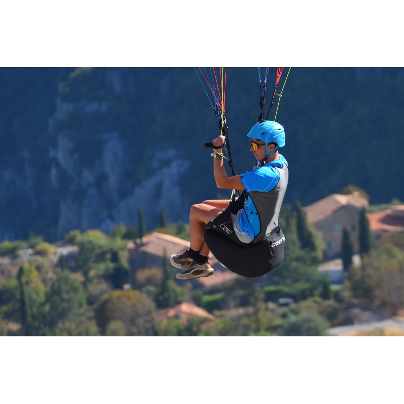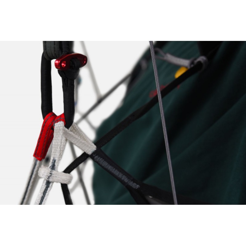 The OZO 2.1n is so light and small to carry that you don't need to consider it when choosing the backpack you intend to use for your ascent. Detachable leg straps make gearing up simple, and the transition to flight mode is quick and easy. EVA foam leg padding makes longer flights comfortable. A lightweight speed bar is included with the harness.