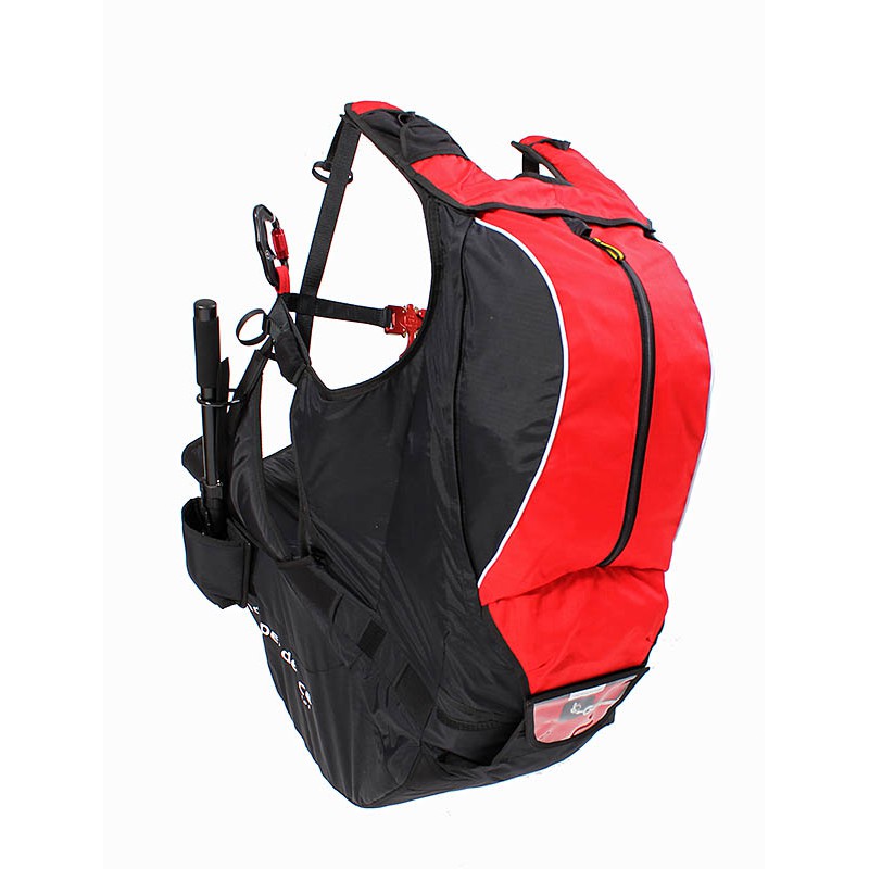 Many well thought-out little details such as a fixture for a camera pole and its radio pocket make Pilot an ideal harness for tandem pilots.