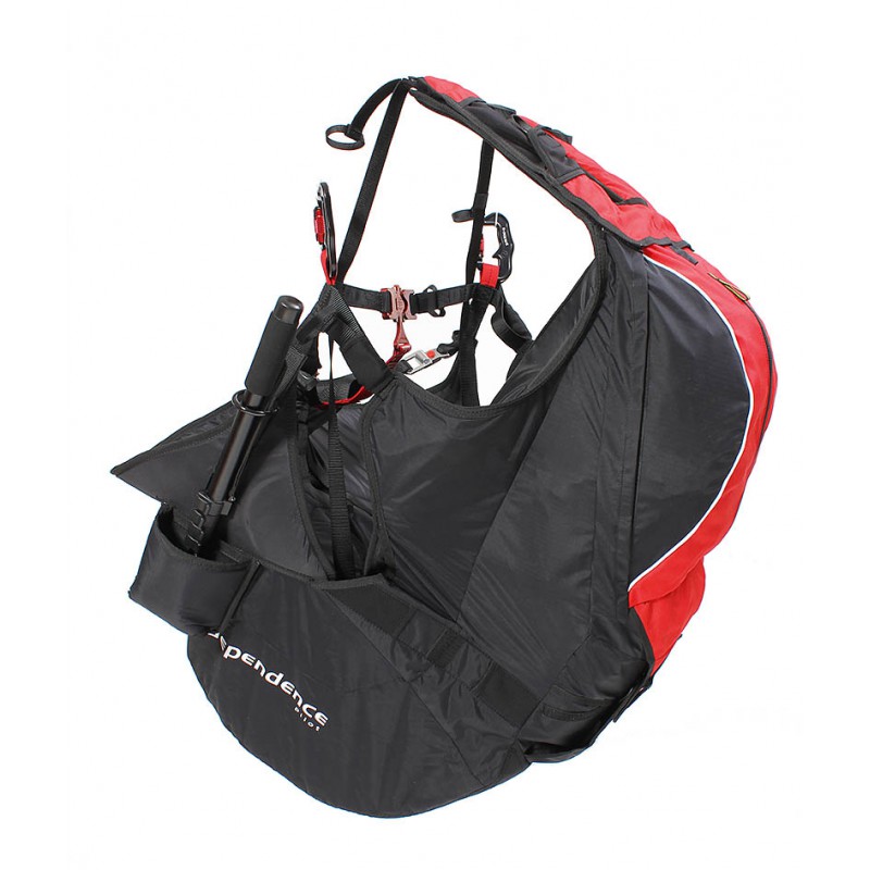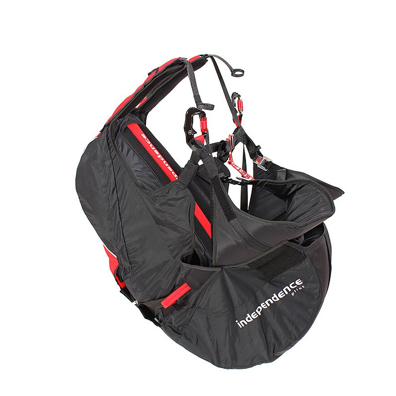 Pilot has been designed for the special requirements of tandem paragliding. The combination of leg belts and seat board balances load equally and optimises seating comfort. At the same time the pilot gains free movement space, as his/her legs almost hover above the seat board. The whole geometry and an upright seating position achieve excellent sight and an ideal transition from running to seating.