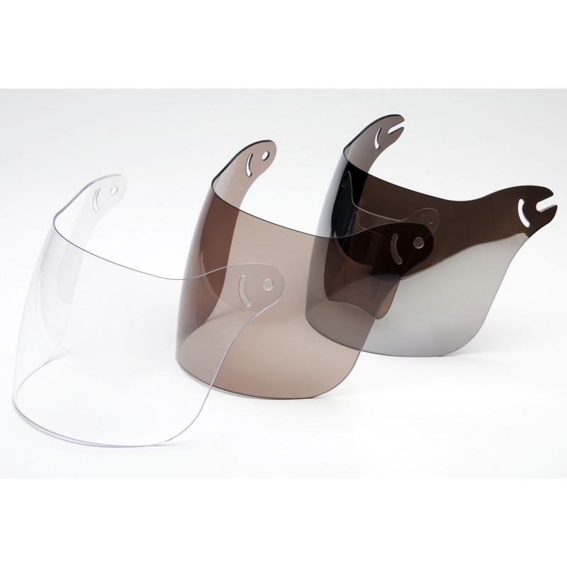 It is made of polycarbonate with anti-scratch and anti-fog treatment.