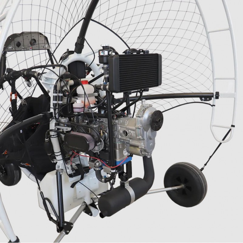This trike, originally designed for bigger and powerful engines such as the Rotax582 and RMZ 500, has also been very popular with this 300cc water-cooled single cylinder engine, small and light with low fuel consumption and easy maintenance.