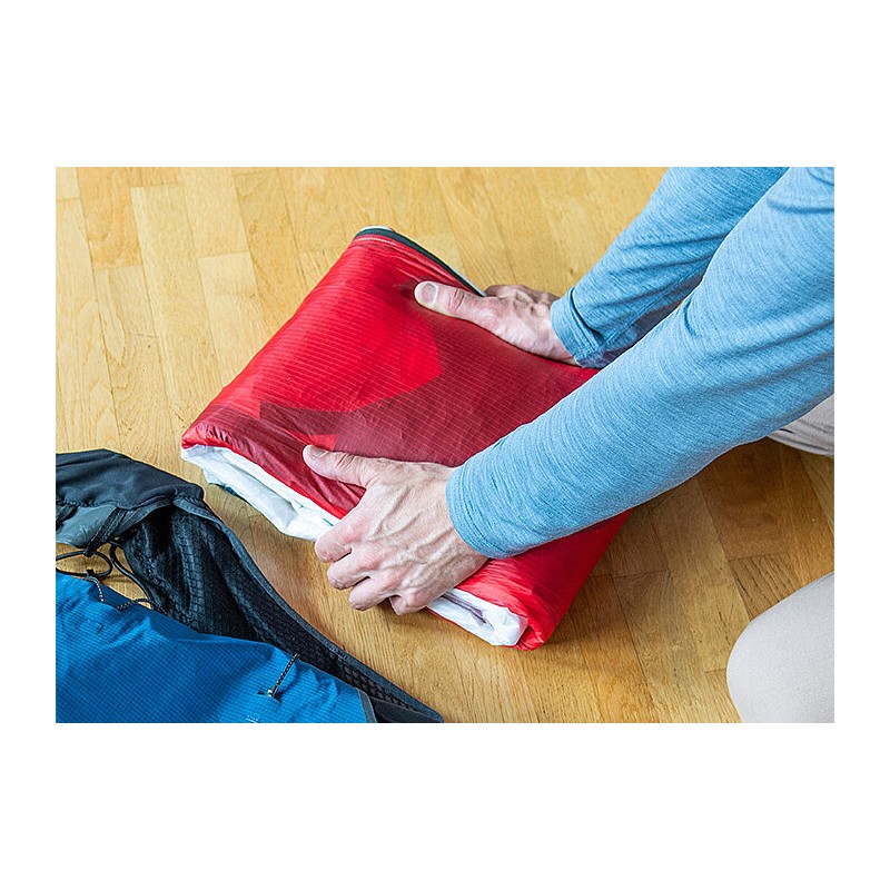 For example: The DOUBLESKIN 2 in size 16 fits in its full length. The pack sack can also be used for the larger sizes, but then the trailing edge must be folded.