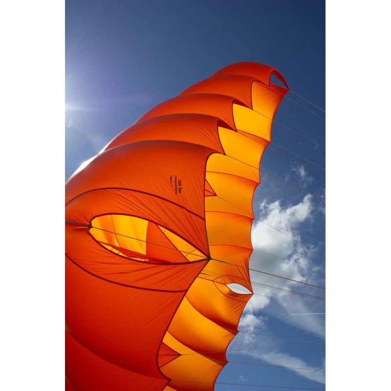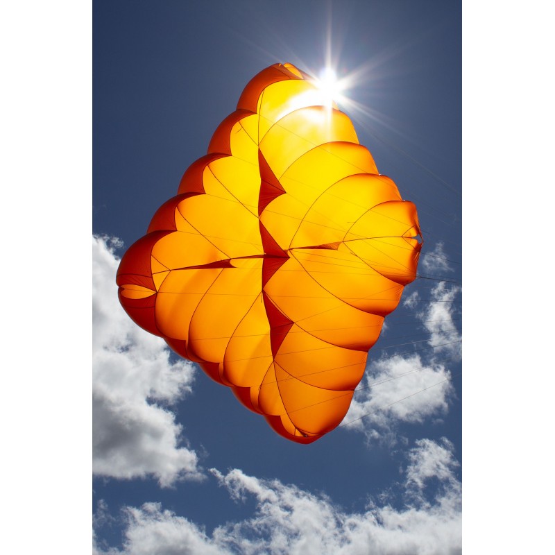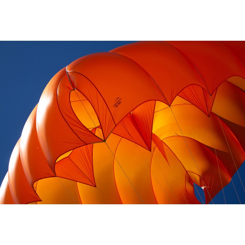 Due to the low canopy height and the X-Flares, which absorb a disproportionately high load, the base could be realized largely without reinforcing straps. This ensures low mass, which makes an additional contribution to fast opening at slow speeds.