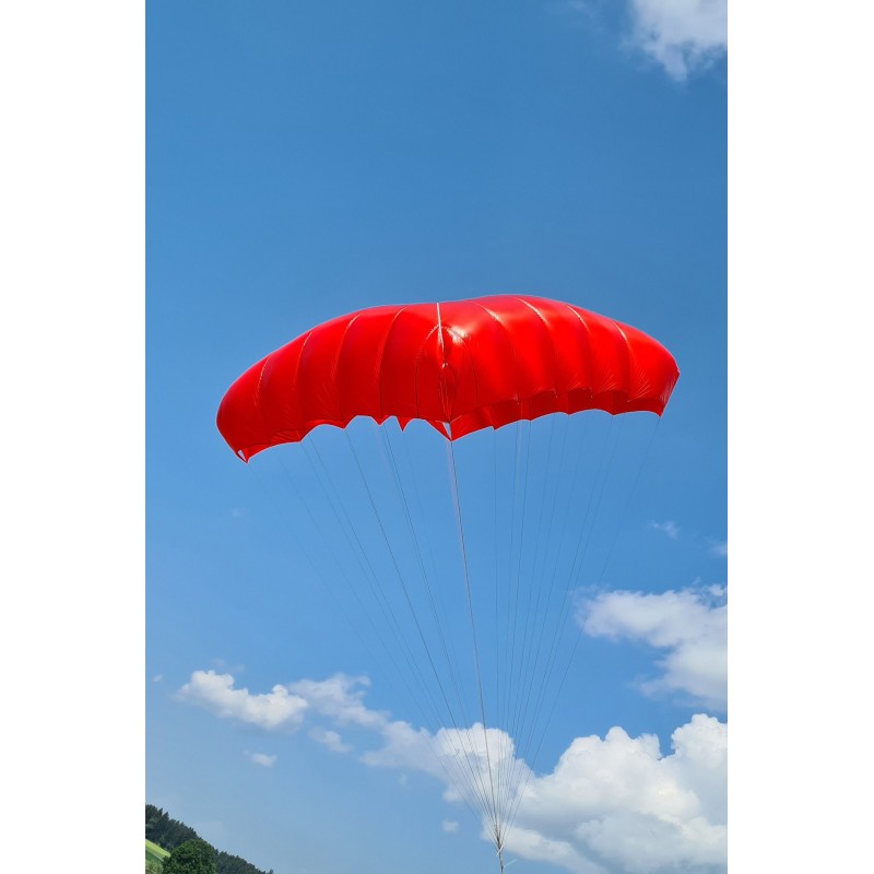 As a positive side effect, the canopy volume and the canopy base, which is important for opening behavior, are significantly smaller. This shortens the filling time and thus the opening time. High opening safety is achieved by the graduated line lengths. When packed, the rescue system offers plenty of surface area for reliable opening.
