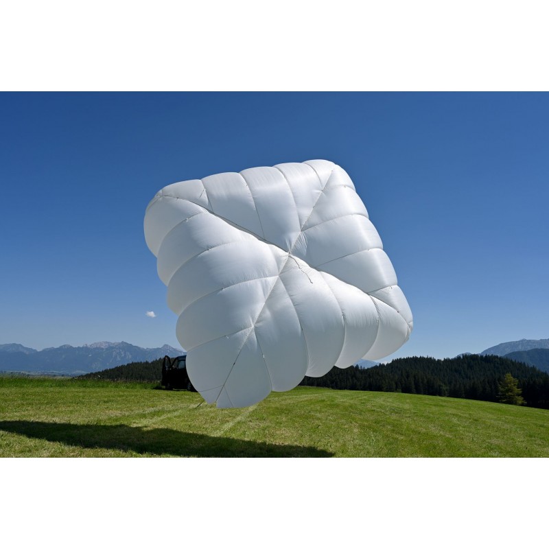 As a positive side effect, the canopy volume and the canopy base, which is important for opening behavior, are significantly smaller. This shortens the filling time and thus the opening time. High opening safety is achieved by the graduated line lengths. When packed, the rescue system offers plenty of surface area for reliable opening.