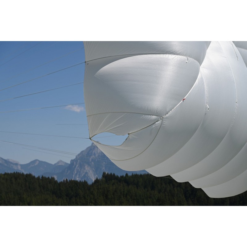Due to the low canopy height and the X-Flares, which absorb a disproportionately high load, the base could be realized largely without reinforcing straps. This ensures low mass, which makes an additional contribution to fast opening at slow speeds.