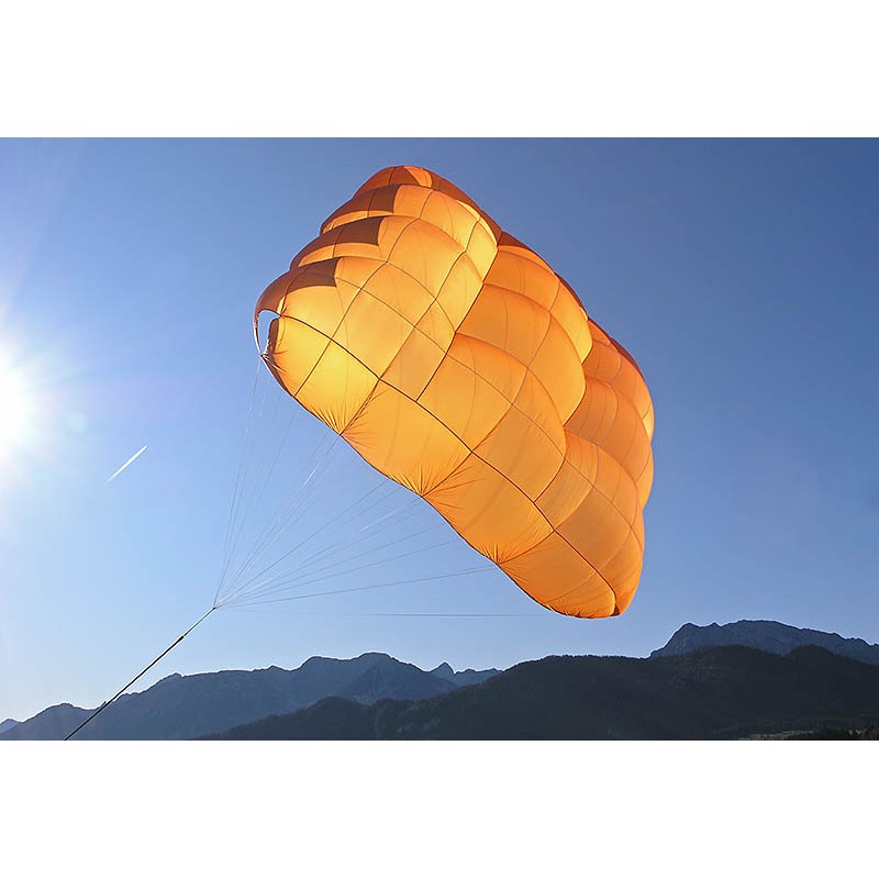 EVO CROSS is a rescue system based on a cruciform canopy. The square basis has been in military use for man years. We took over the basic shape and developed a parachute, which ideally meets the requirements of paragliding, especially regarding fast opening times. The hour of birth for a new rescue parachute generation.