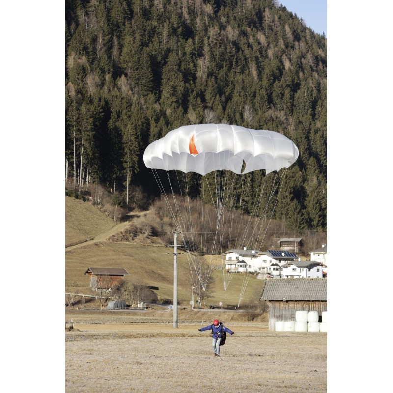 This horizontal speed also allows for a glide ratio of around 1.5, which allows the pilot to steer the parachute using the handle system, and thus avoid potential obstacles during the descent.