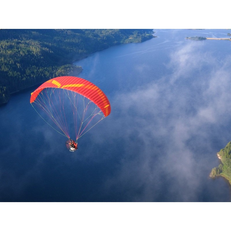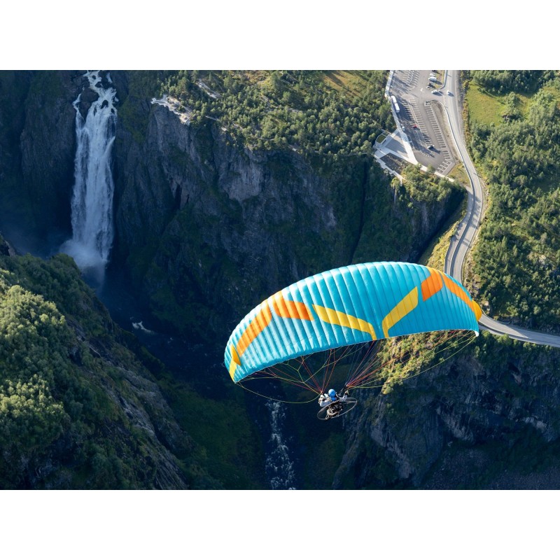 Using lightweight fabric in a paramotor wing has positive effects all around, the main advantages are faster inflation for easier launches, improved handling, a more agile and responsive feel, as well as enhanced passive safety thanks to reduced sail inertia.