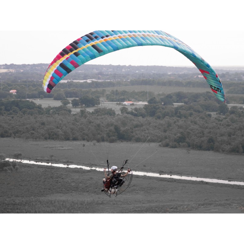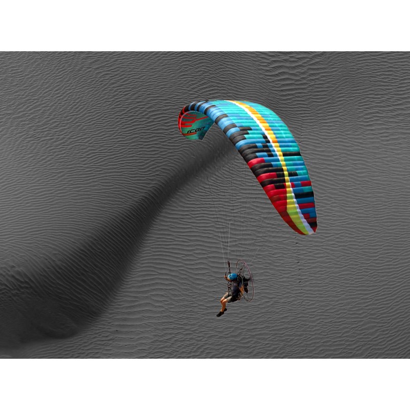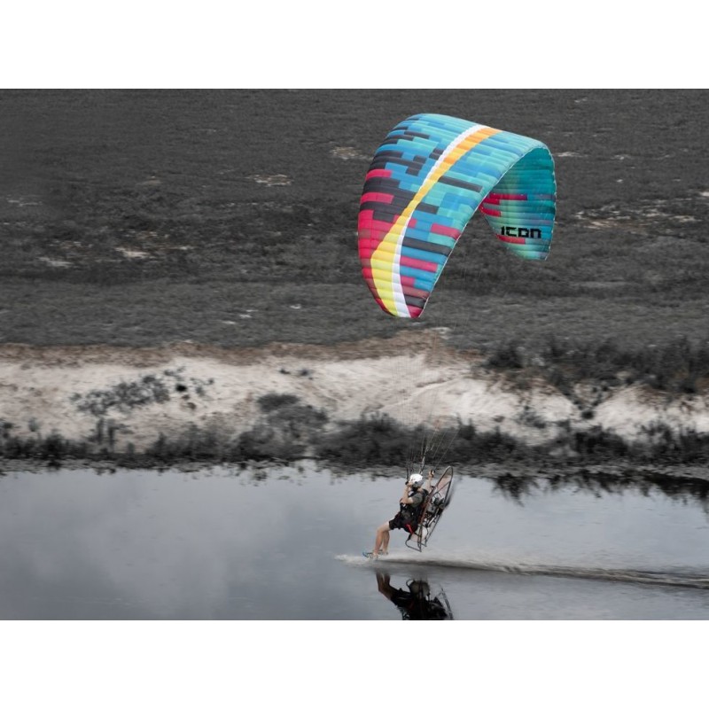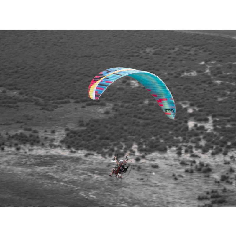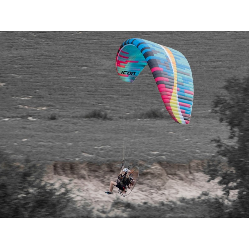 Plug in, power up, and get ready to roll. The ICON is a brand-new freestyle paramotor wing for advanced and expert pilots who want pure energy in the sky. With a flat aspect ratio of 5.7, 57 cells, and shorter lines than anything in its class, the ICON doesn’t just turn – it spins, rocks, and rolls.