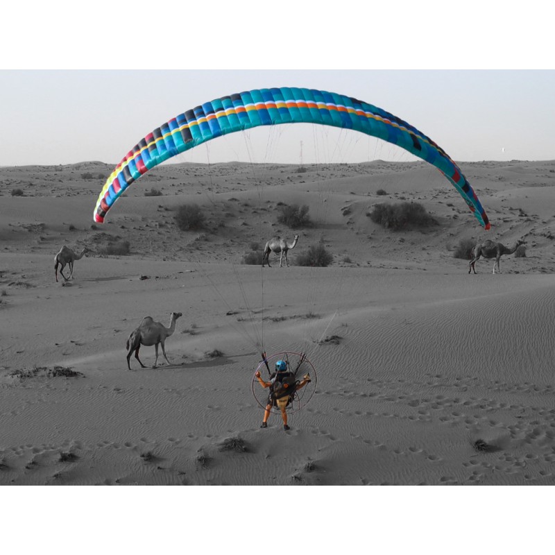 - The riser system features 2D steering, sliding mini A-risers, and snap locks.