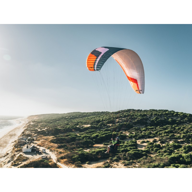 Fast, precise and playful. Piloting through the risers allows you to automatically adjust the wing's angle of attack, keeping it stable even at top speed. The Jester invites you to discover a new way to play with the wind.Parakite
