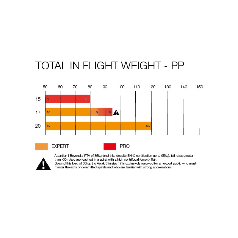 | Total in flight weight PP (kg) | 50-80 | 50-95 | 50-120 |