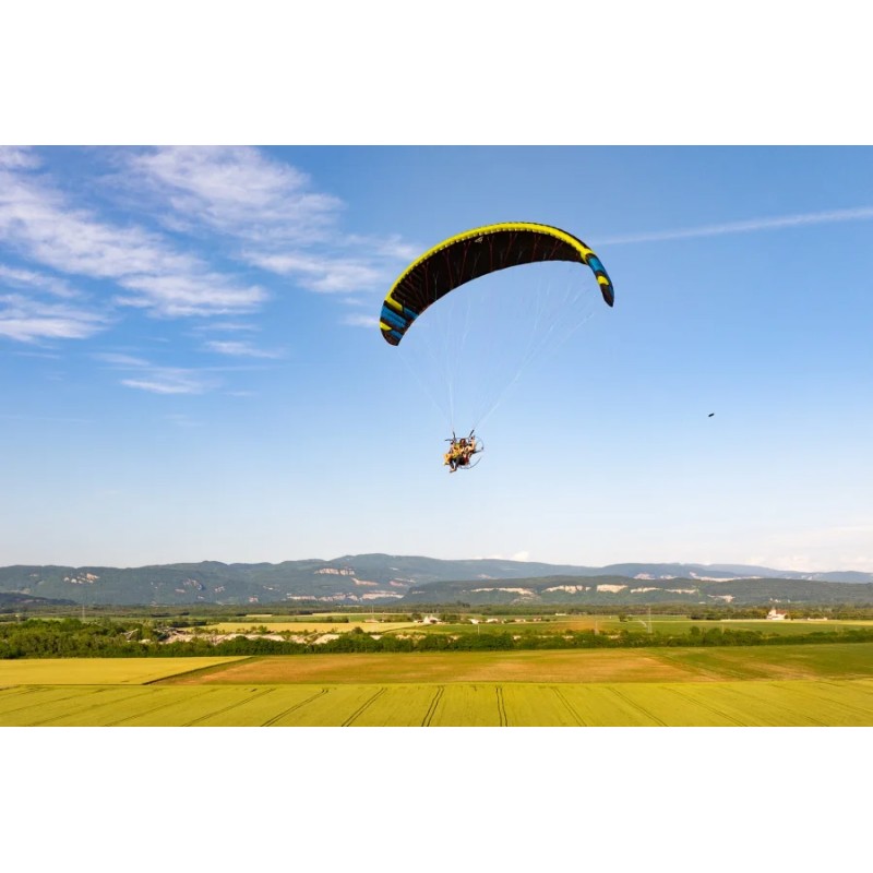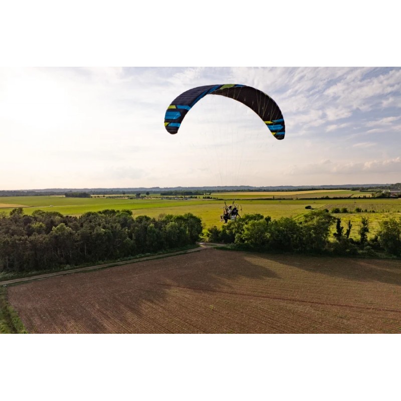 Certified EN-C up to 210kg in free flight and 320kg in paramotor, it exceeds all expectations, asserting its place among the best. A true delight for professionals, it features exceptional design, surprising performance, and extraordinary efficiency — truly the power to challenge the elements.