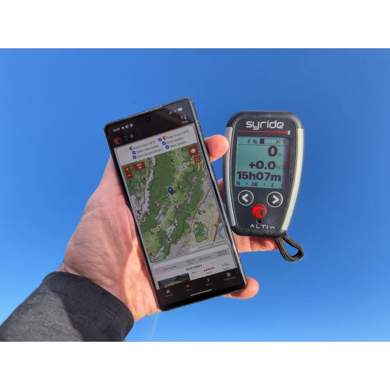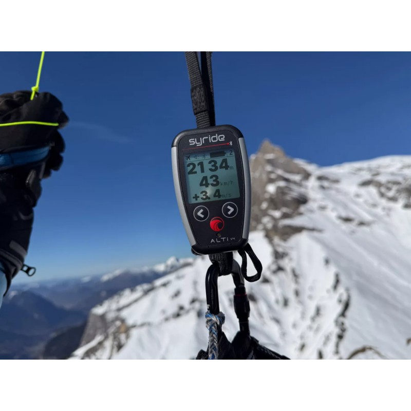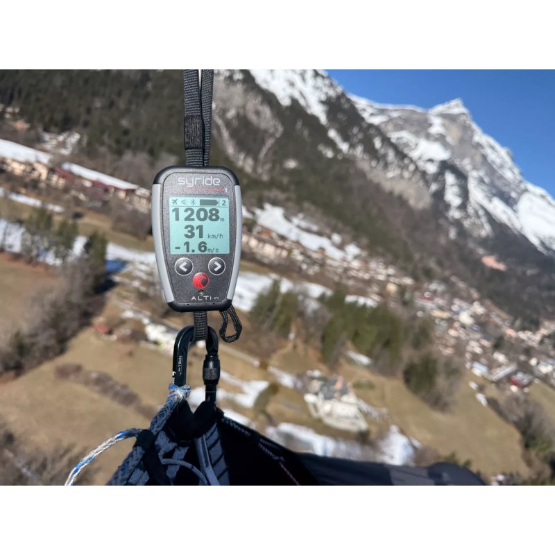 Connected to the Syride Link app, the Alti V4 can display GPS information from your phone, such as ground speed, GPS altitude or coordinates, combining barometric precision with your phone’s GPS data.