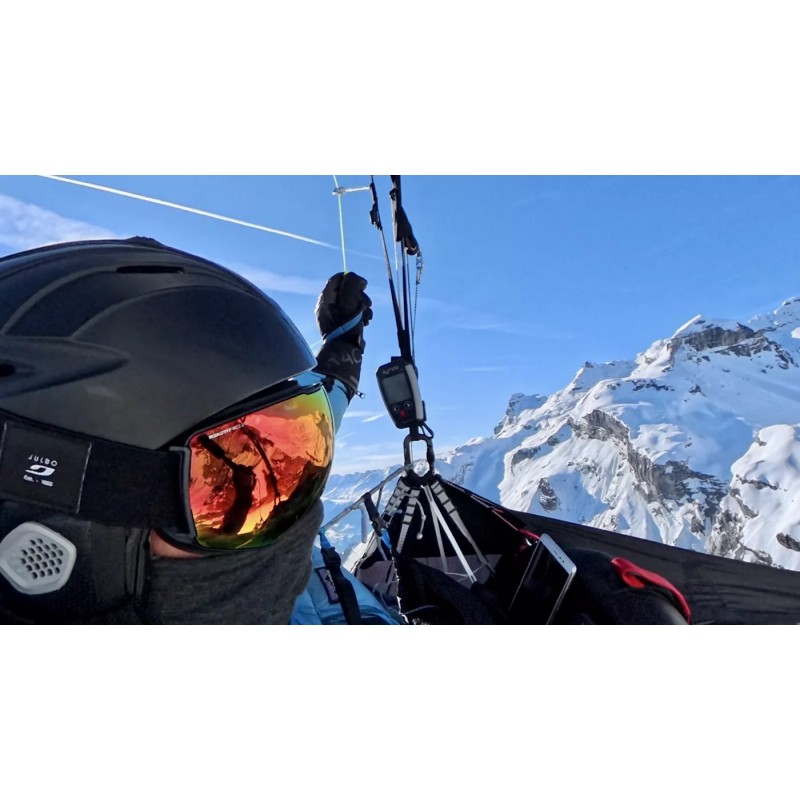 Delivered with a riser mounting system, the instrument installs easily and stays perfectly in place during flight, allowing use without releasing the controls and ensuring optimal readability. Its Velcro straps also allow cockpit mounting.